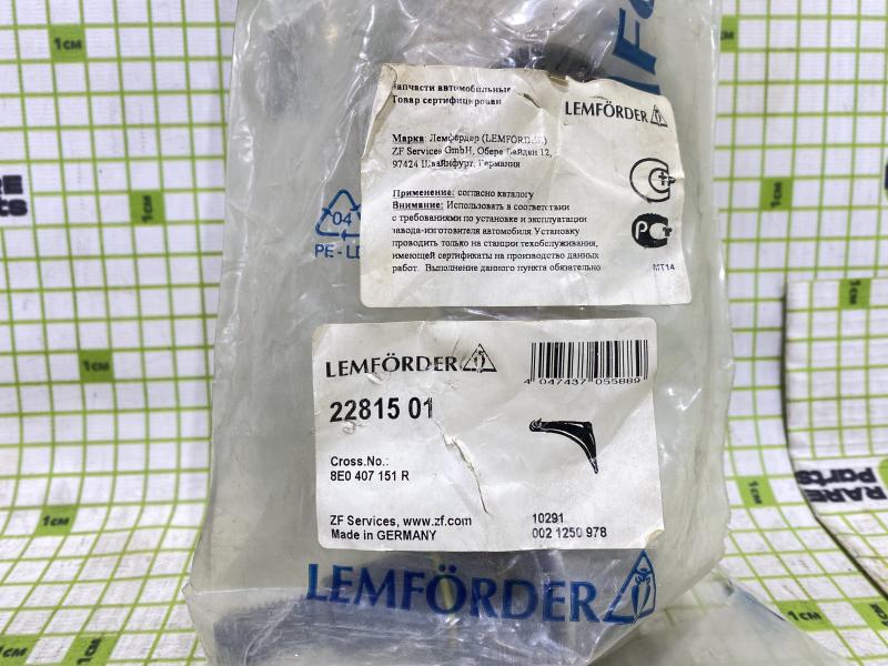 Рычаг передний нижний лев/прав для Audi A4 B6 2000-2004Audi A4 B7 2005-2007Seat Exeo 2009-2013 Производитель: Lemforder (Германия) Новый Аналог (складские остатки) VAG 8E0407155J, 8E0407151R, 8E0407151N.