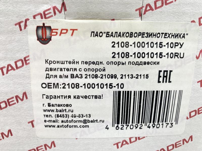 Опора двигателя передняям ВАЗ 2108-2115 Производитель: БРТ РОССИЯ Новый Аналог (складские остатки) 2108-1001015-10
