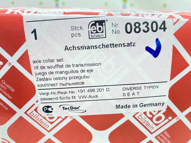 Пыльник ШРУСа внутр (к-кт) Audi 80/90 B3 1986-1991 Audi 80/90 B4 1991-1995 Seat Cordoba 1993-1996 Seat Cordoba 1996-1999 Seat Cordoba 1999-2002 Seat Ibiza II 1993-1996 Seat Ibiza II 1996-1999 Seat Ibiza II 1999-2002 Seat Leon (1M1) 1999-2006 Seat Toledo I 1991-1999 Seat Toledo II 1999-2006 Skoda Octavia (A4 1U-) 2000-2011 Skoda Octavia (A5 1Z-) 2004-2013 VW Golf IV/Bora 1997-2005 VW Caddy I 1979-1995 VW Caddy II 1995-2004 VW Golf III/Vento 1991-1997 VW Golf II/Jetta II 1983-1992 VW Golf IV/Bora 1997-2005 VW Golf II/Jetta II 1983-1992 VW Passat B3 1988-1993 VW Polo Classic 1995-2002 VW Golf III/Vento 1991-1997 Производитель: FEBI BILSTEIN (Германия) Новый Аналог (складские остатки) 191498201D, 321498201A, 321498201D