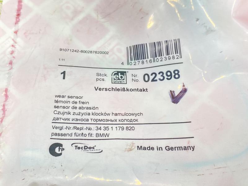 Датчик износа колодок задних для BMW X5 E53 2000-2007. Производитель: Febi (Германия) Новый Ана...