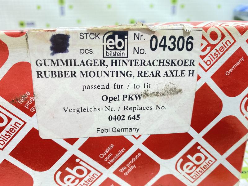 Сайлентблок задней балки Opel Ascona C 1982-1988 Opel Astra F 1991-1998 Opel Kadett E 1984-1992 Opel Vectra A 1988-1995 Производитель: FEBI BILSTEIN (Германия) Новый Аналог (складские остатки) 0402645, 402645, 00402645. 90305431