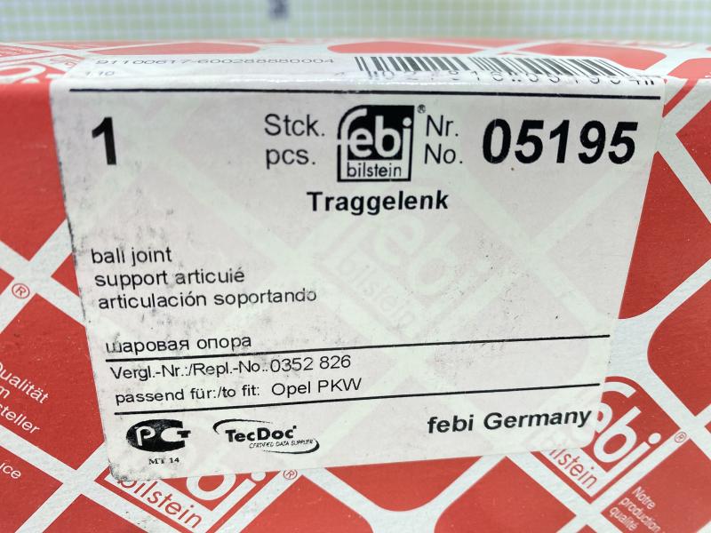 Опора шаровая левая передней подвески Opel Omega A 1986-1994 Opel Senator B 1987-1993 Производитель: FEBI BILSTEIN (Германия) Новый Аналог (складские остатки) 90272194. 0352826, 352826, 00352826