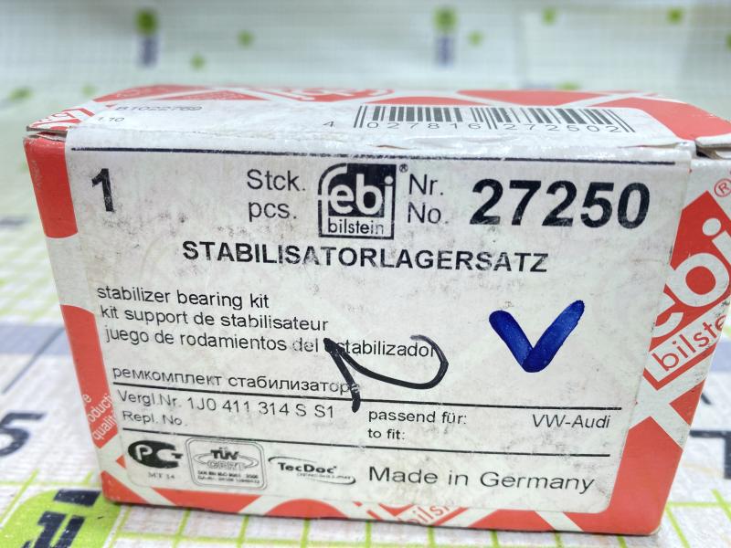 Втулка стабилизатора с креплением Audi A3 1997-2003 Skoda Octavia 2001-2011 VW Golf IV 1998-2006 Производитель: FEBI BILSTEIN (Германия) Новый Аналог (складские остатки) 1J0411314S, 1J0411314SS1