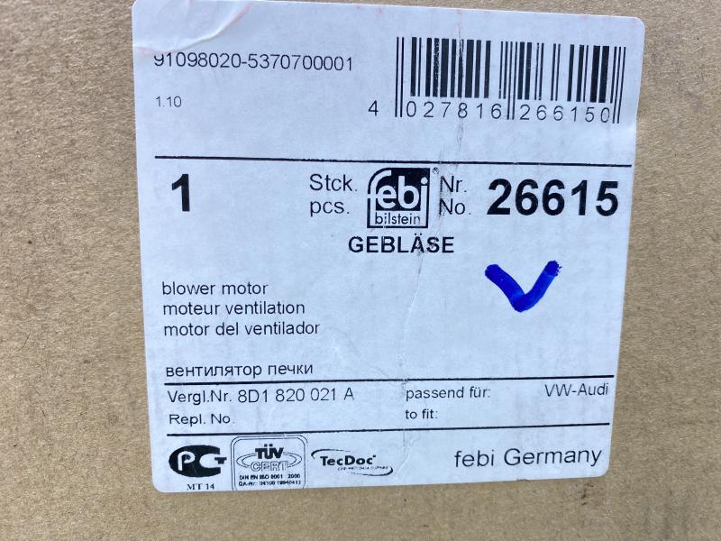 Моторчик отопителя для автомобилей с кондиционером Audi A4 B5 1994-2001 Skoda Superb (3U) 2002-2008 VW Passat B5 1996-2000 VW Passat B5 2000-2005 Производитель: FEBI BILSTEIN (Германия) Новый Аналог (складские остатки) 8D1820021A