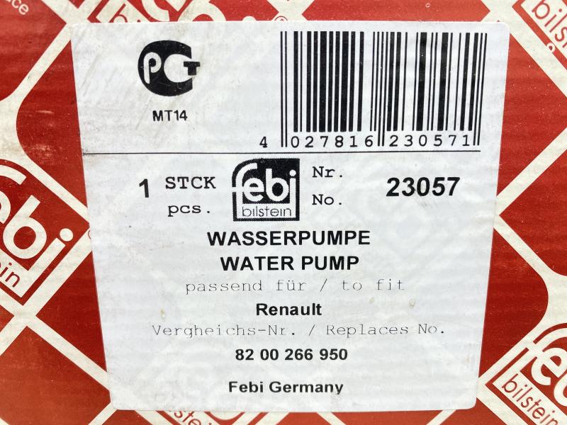 Насос водяной (помпа) (1.2 16V D4F) Renault Clio III 2005-2012 Renault Clio II/Symbol 1998-2008 Renault Clio IV 2012-2020 Renault Kangoo 1997-2003 Renault Kangoo 2003-2008 Renault Sandero 2014-2022 Renault Clio II/Symbol 1998-2008 Renault Twingo 1993-2007 Renault Twingo 2007-2014 Производитель: FEBI BILSTEIN (Германия) Новый Аналог (складские остатки) 7701478923, 8200702750, 8200042880, 8200397732, 210101832R, 8200238333, 8200266950, 210108845R