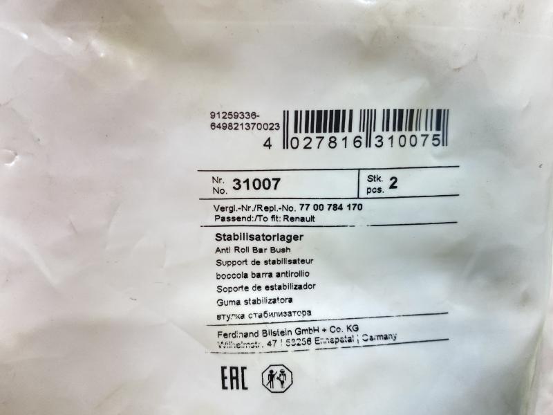 Втулки переднего стабилизатора (кк-т 2 шт) Renault Megane I 1996-1999 Renault Megane I 1999-2004 Renault R19 1988-1992 Renault R19 1992-2002 Renault Scenic 1996-1999 Производитель: FEBI BILSTEIN (Германия) Новый Аналог (складские остатки) 7700784170