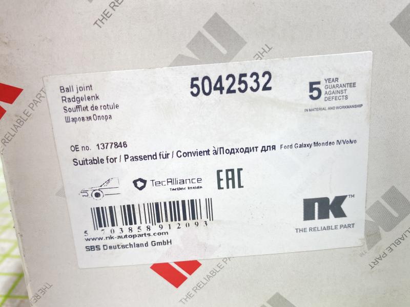 Опора шаровая передней подвески Ford Galaxy 2006-2015 Ford Mondeo IV 2007-2015 Ford S-MAX 2006-2015 Volvo S60 2010-2018 Volvo S80 2006-2016 Volvo V60 2011-2018 Volvo V70 2007-2016 Производитель: NK (Германия) Новый Аналог (складские остатки) Ford 1507181S1. 1377846