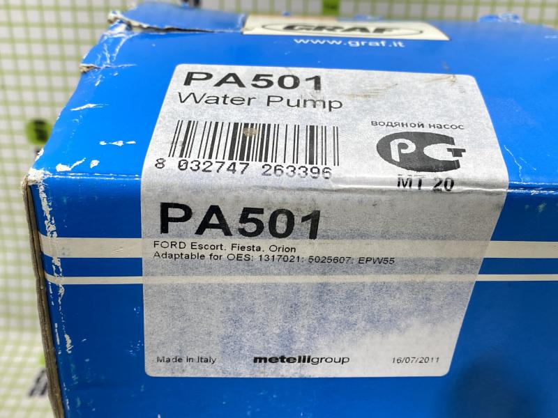 Насос водяной (помпа) для Ford Escort/Orion 1990-1995 Ford Escort/Orion 1995-2001 Ford Fiesta 1989-1995 Производитель: Graf (Италия) Новый Аналог (складские остатки) 5025607, EPW55, 1317021, 928X8591AA