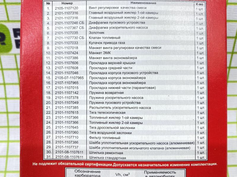 ДААЗ ремонтный комплект карбюратора тип (Озон) ВАЗ 2105-20 Производитель: ДААЗ РОССИЯ Новый Аналог (складские остатки)