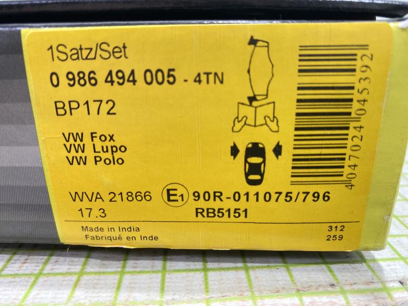 Колодки тормозные передние к-кт Seat Arosa 1997-2004 Skoda Fabia 1999-2007 Skoda Fabia 2007-2015 VW Golf III/Vento 1991-1997 VW Lupo 1998-2005 VW Polo 1994-1999 VW Polo 1999-2001 VW Polo Classic 1995-2002 VW Golf III/Vento 1991-1997 Производитель: BOSCH (Германия) Новый Аналог (складские остатки) 6N0698151, 6N0698151C, 571923, 6QE698151